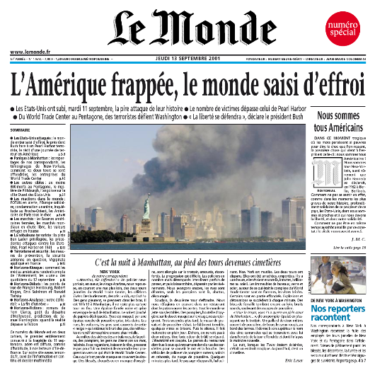 shit, sorry, I am not French, it was a reference to the je suis Charlie thing. Ah, je comprends maintenant! Along the same lines, one of the first things I thought of after hearing tonight's news was how the front page of Le Monde famously said "Nous sommes tous Americains" after 9/11.